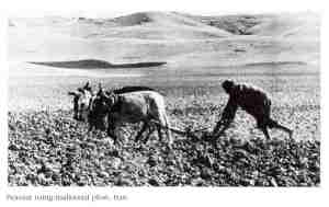 Thus the main features of Greek agriculture continued to be ploughing with a hooked plough (for long entirely of wood) drawn by oxen, sowing seed in furrows, hacking and weeding the grain fields, and harvesting with sickle and threshing board. Hence labour intensity was considerable, and since virgin land was no longer available, it was difficult to shift from subsistence agriculture to market production, even though grain prices were high in later times.
