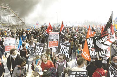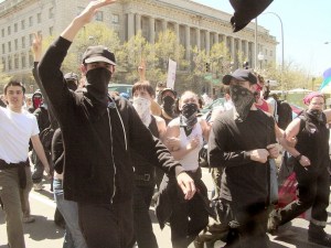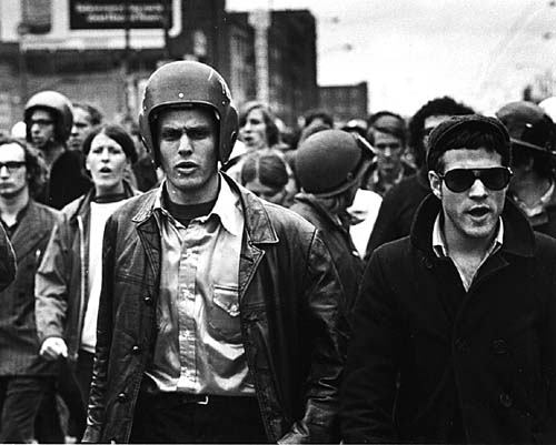 A crucial dividing line among anti-war organizations was the use of deliberate destruction of property as a tool of protest. Probably the majority of individuals and groups opposed the use of violence, whereas small organizations deliberately sought out opportunities for “trashing”. The slogan, “Days of Rage,” captures this perspective. This same divide was evident in the G20 demonstrations in Toronto last month, with Black Bloc activists deliberately finding opportunities for burning police cars and smashing shop windows. (Here is a manifesto from the Wombles on the subject of violence in demonstrations.) Peter Ackerman demonstrates in Strategic Nonviolent Conflict: The Dynamics of People Power in the Twentieth Century that non-violent protest has a very wide range of strategies at its disposal, and that these mechanisms have often proven very effective in achieving the goals of the protest.