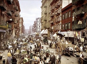 These observations take me in two directions. One is historical. I’m pretty sure that cities were much less visibly marketed and advertised in 1861 or 1911 than they are today. There must be some interesting work on the history of advertising, but the bottom line is this — advertising was a product of an intensive consumer product society, and consumerism didn’t really become dominant until the twentieth century. So living in Ghent, San Francisco, Grand Rapids, Stockholm, or New Orleans in 1880 would have involved a dramatically quieter environment when it came to product advertising and posters in public spaces. Here are a few street scenes to give an idea of the limited scope of street advertising at roughly the turn of the 20th century from Brussels, New York, and Manchester.