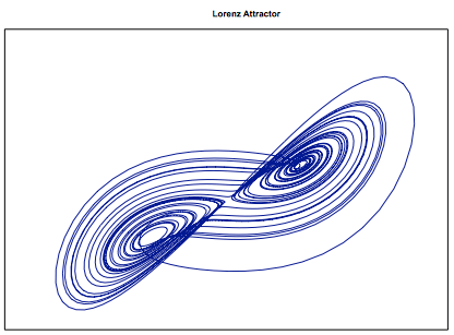 Simon finds some of the central concepts of the third phase to be more promising for the study of social phenomena. The mathematics and physics of chaotic behavior (where simple low-level processes can aggregate to wildly variant higher-level outcomes), simulations of evolution through computational models (genetic algorithms), and the exploration of cellular autonoma (the game of life) all come in for favorable comments. (The Lorenz attractor illustrated here is a common example of chaotic behavior.)