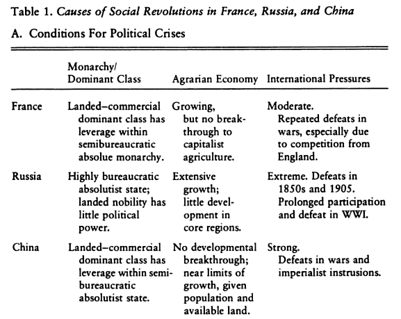 (Sources: States and Social Revolutions, pp. 155, 282)