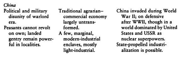 In Skocpol’s analysis of China several events and structures were most fundamental in the unfolding of China’s social revolution.