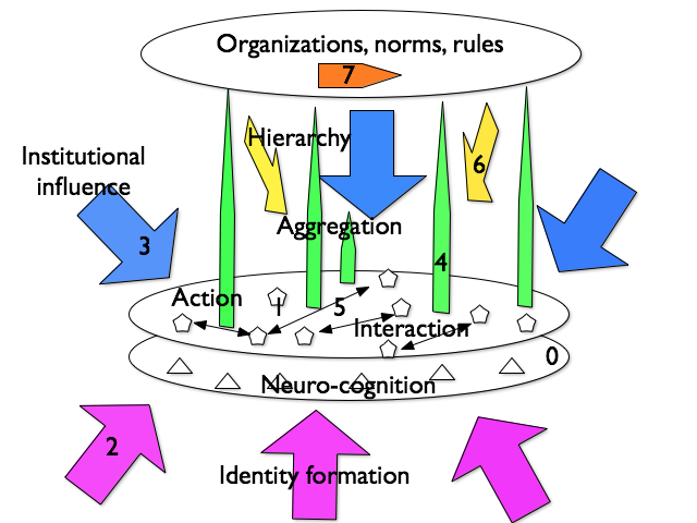 - How do individual agents’ actions aggregate to higher-level social patterns? [aggregative mechanisms]