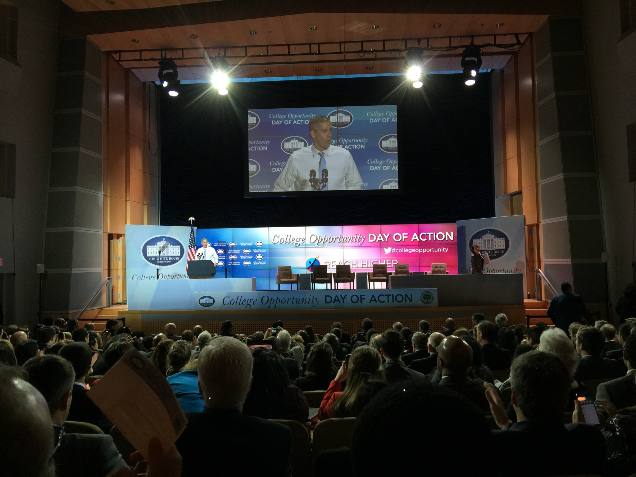 Today is the second White House College Opportunity Day of Action in Washington DC. President Obama and First Lady Michelle Obama have spearheaded this effort to increase the participation levels of disadvantaged students in post-secondary education. Several hundred presidents of universities around the country have come together in Washington to share best practices in encouraging college participation and college success for all Americans, including low income and educationally disadvantaged young people. The disparity in college attendance rates between the top and bottom quartiles of family income is shocking, even when we control for SAT/ACT performance. (Various estimates were offered today, including an estimate of more than 75% attendance in the top quartile versus less than 10% for the bottom quartile.)