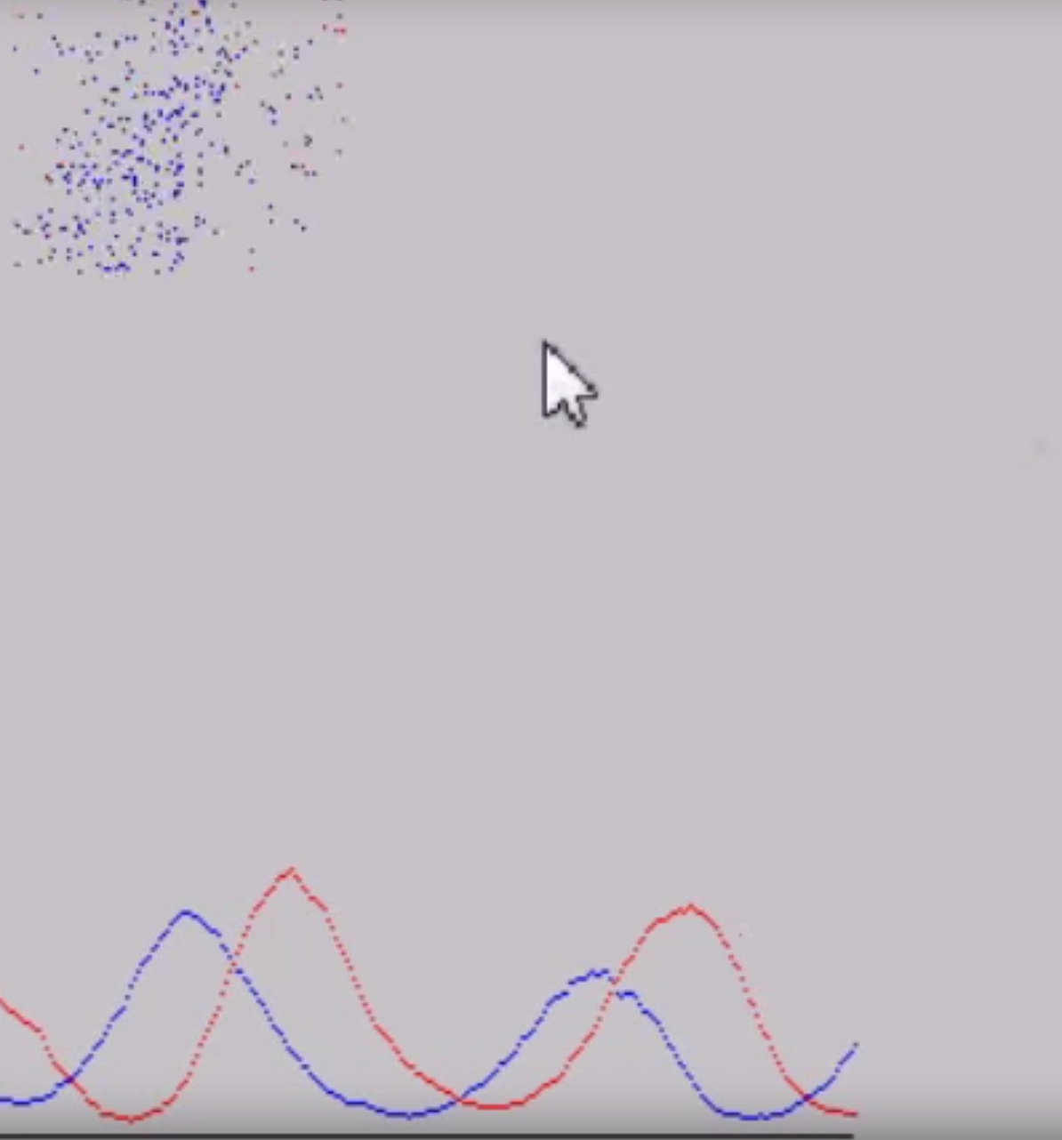The author makes a key point at 2:15: the pattern of variation of predator and prey presented in the simulation is a well-known characteristic of predator-prey populations. (Red is predator and blue is prey.)