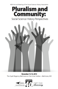 The 40th annual meeting of SSHA took place in Baltimore this weekend. The Social Science History Association is an especially rewarding academic meeting for scholars interested in the intersection between historical processes and social scientific research tools and explanations. The rationale for the organization is to provide a venue for bringing together the study of specific historical topics and the use of tools and methods of the social sciences to further understand those episodes. History and social science methods mutually inform one another at the SSHA. The membership is highly interdisciplinary — in fact, interdisciplinarity is the theme for the 2016 meeting in Chicago — and every meeting offers a chance for participants to discover new research and new theories that are relevant to their own areas of work. The overall theme for the conference was “Pluralism and Community”, and a significant number of panels did indeed strive to shed new light on these topics.