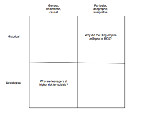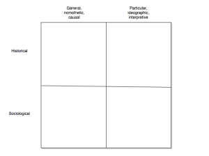 On this approach, only two of the cells would be occupied: sociological / general and historical / particular. There are no general historical explanations and no particular sociological explanations.