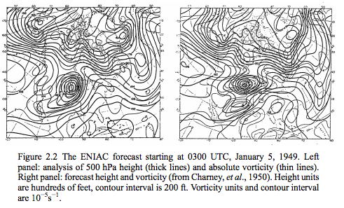 There are many interesting threads in von Neumann’s intellectual life, but one aspect that is particularly interesting to me is the early application of the new digital computing technology to the problem of simulating large complex physical systems. Modeling weather and climate were topics for which researchers sought solutions using the computational power of first-generation digital computers, and the research needed to understand and design thermonuclear devices had an urgent priority during the war and post-war years. Here is a description of von Neumann’s role in the field of weather modeling in designing the early applications of ENIAC (P. Lynch, “From Richardson to early numerical weather prediction”; link):