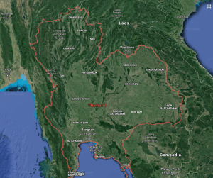 Here is a map that shows the geophysical features of the region that eventually became unified Thailand, demonstrating stark delineation between lowlands and highlands: