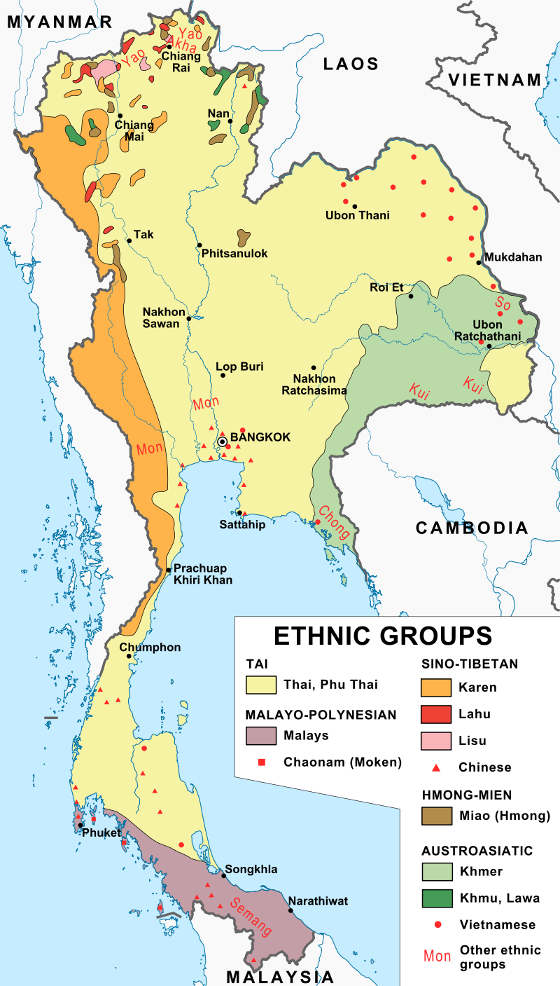 And here is a map of the distribution of ethnic and language groups in Thailand (link), another important element in Chaiyan’s account of the consolidation of the Thai monarchy: