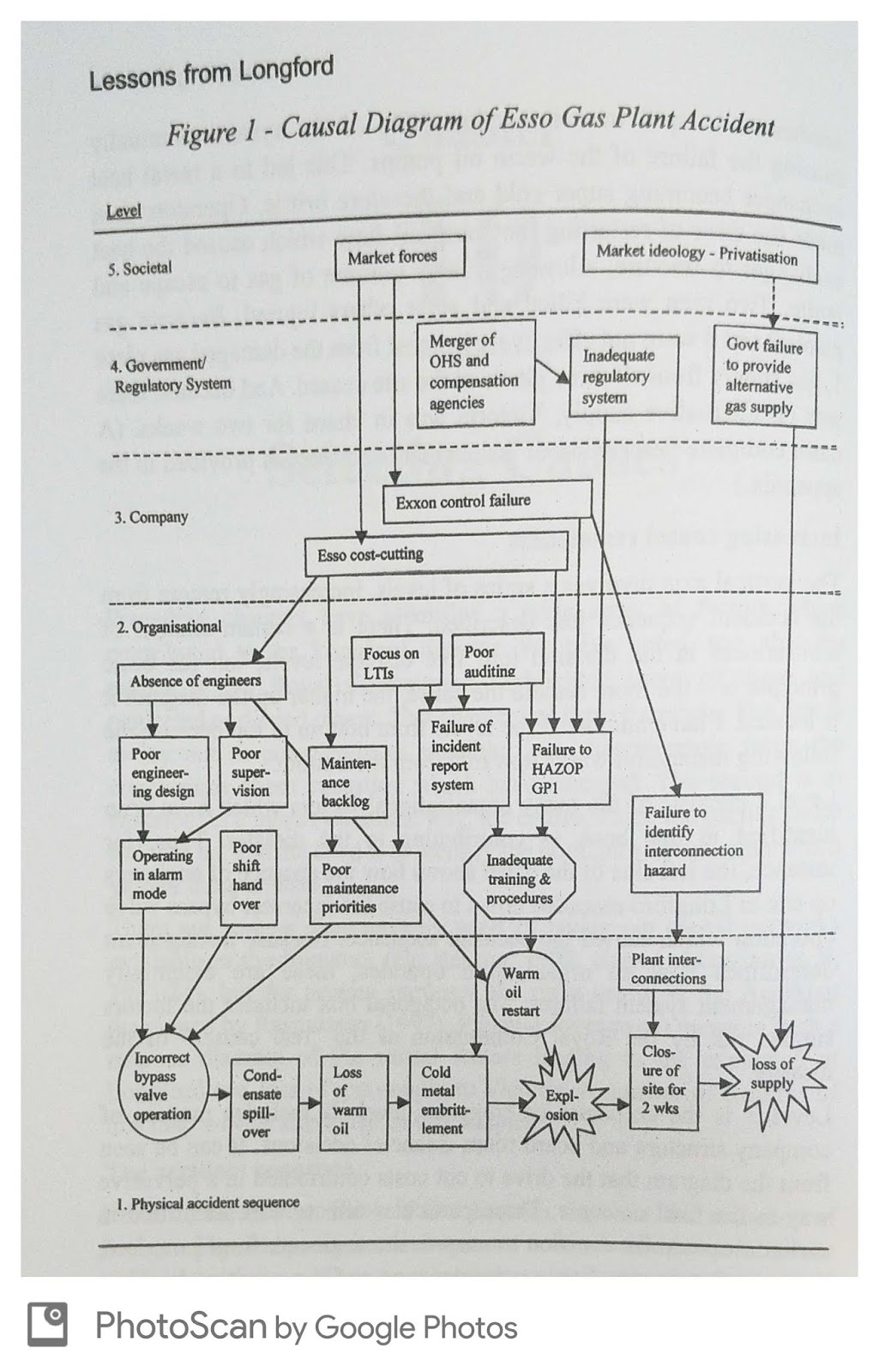 Here is the causal diagram that Hopkins offers for the occurrence of the explosion at Longford (122).
