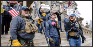 Where does the gun-toting extremism come into this political activism? One obvious strand of this “movement” is the extremist anti-government ideology that brought world attention to the Malheur National Wildlife Refuge takeover in 2016. These are radical militia adherents, rejecting the authority of the Federal government in all of its actions, and willing to overtly threaten the lives of others in their activism. Brandishing semi-automatic weapons is not political theatre; it is not “simply an assertion of second amendment rights”; it is a deliberate effort to intimidate and frighten the rest of society. And it is hard to avoid the question — what if these were anarchist protesters in black masks carrying semi-automatic weapons? Or Black Panthers? And what if the venue were the entrance to the White House, or the entrance to the Capitol Building in Washington? How would conservative Republicans react to these scenarios?