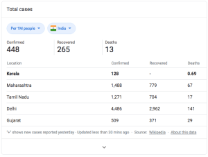 The Indian state of Kerala has taken an especially active approach to responding to the COVID-19 pandemic. Kerala, a state of more than 33 million people, is governed by the Left Democratic Front, having won state elections in 2016. LDF is a coalition of left-leaning parties, led by the Communist Party of India-Marxist and the Communist Party of India. The Kerala government has been consistently focused on equity and progress for the poorest sectors of Kerala society. Significantly, the government’s efforts in response to the COVID-19 crisis have fallen into the arenas of both public health and social wellbeing. The government quickly implemented public health strategies recommended by the WHO for responding — test, trace, quarantine — very early in the pandemic in Kerala, more quickly and consistently than the national government. Here is a nice summary by Sonia Faleiro in MIT Technology Review (link).