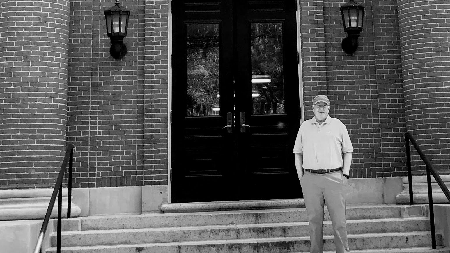 I located a photo taken of that entrance to Emerson Hall just a few years ago: